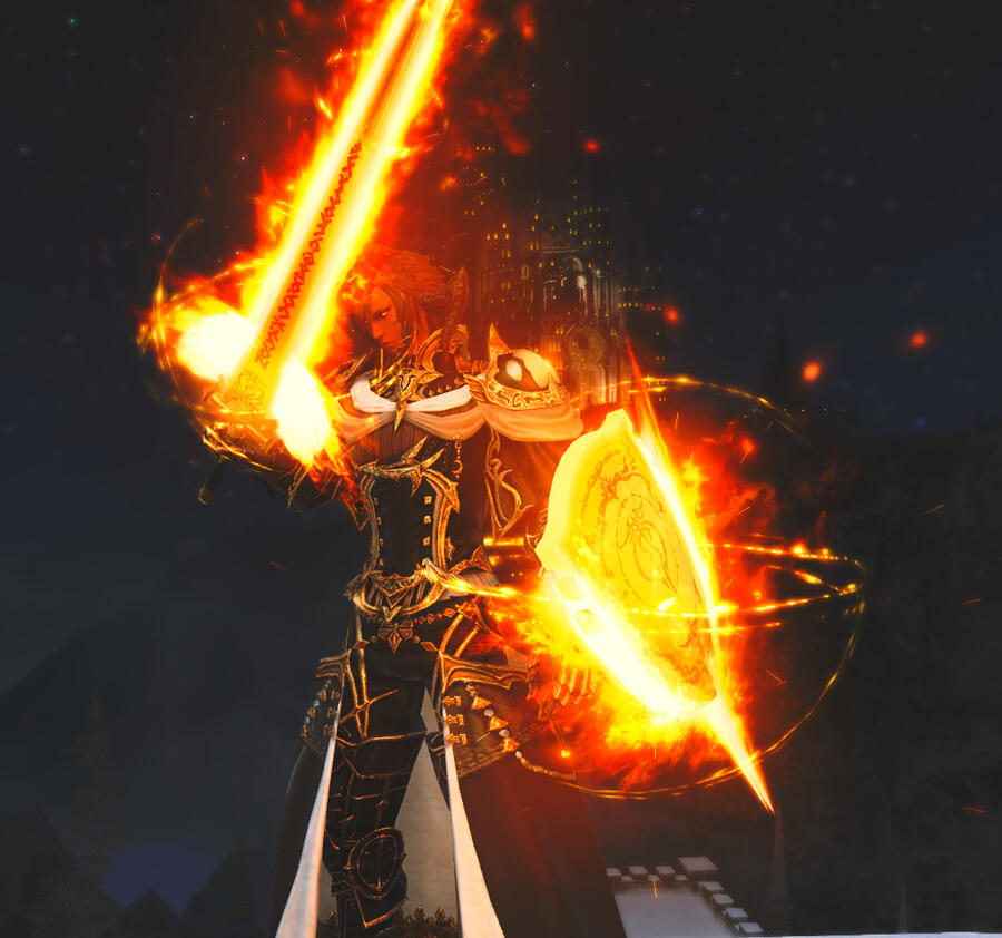 Anri spends the next several weeks buried in books, teaching himself basic sword and shield techniques. The efforts don't go unnoticed either... And thanks to some consistent encouragement, he would eventually work up the courage to reach out to a much more experienced paladin, Captain Kist Thalren of the Immortal Flames, for guidance.Any excess free time outside of his rigorous training was spent quietly searching for information regarding the aetheric trauma attained prior to his reunion with Kitsune.However, thankfully, he would eventually also find the courage to be transparent about the condition of his aether with those closest to him. As a result, through a combination of modified weaponry and a steady intake of supplemental aether, through aetherically dense food for example, Anri has largely been able to adapt to the challenges of his condition.Notable effects of his aetheric condition, specifically due to their means of accquisition, include a heightened sensitivity to voidal presences as well as a significant weakness to those same entities. Other notable effects include blindness in his right eye, and an initial generalized weakness on the right side of his body that required significant training to compensate for over the course of several moons. Despite that, it is still noticeably weaker at times.As of now, Anri remains primarily focused on his training, and learning how best to implement the teachings provided to him. While not focused on this primary goal, he spends the time that he can with those closest to him, such as his friends and new partner; having unexpectedly forged that bond over time as a result of happenstace stemming from a sparring tournament he had attended on a whim on the outskirts of Ul'dah.