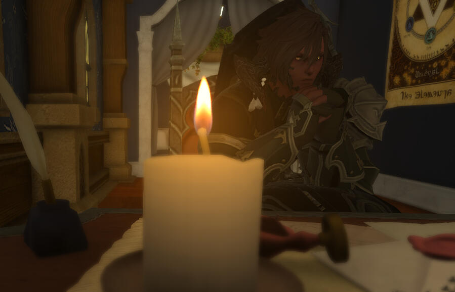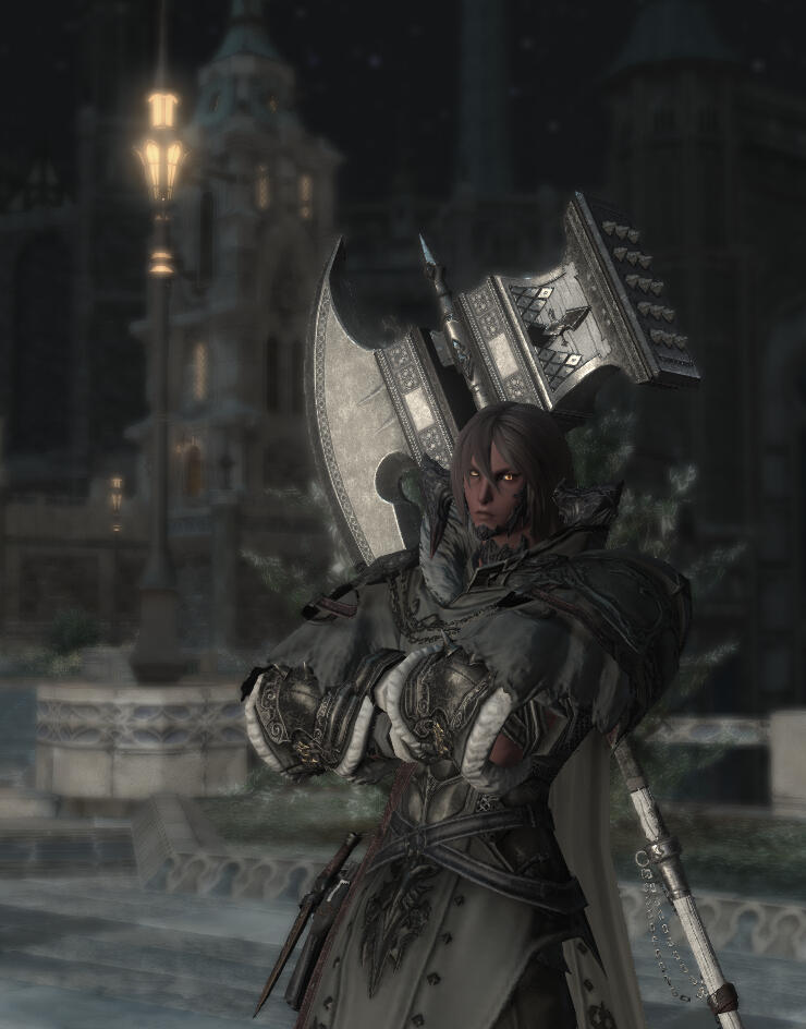 Recklessly naive optimism and ambition eventually led him on a diverging path.Although this initially went well, it would slowly become clear that the unattended ghosts of his past were affecting him, and those around him, much more than he realized.This was something he would not come to understand until it felt as though his entire world had practically collapsed. It was as if he were being consumed from within, ever eternally obscured by the very same looming shadow he had been attempting to run from since first venturing out on his own.Since that night.Initially he returned to Ishgard, where he spent many long hours reading in an attempt to distract from the destruction left in his wake.In the midst of this somber retreat, he received an unexpected letter, entirely unrelated, at least directly, to his own recent personal failings, that would prompt a long overdue reunion.He is given a choice.Submit, or overcome.The resulting confrontation leaves him fundamentally altered; both physically and otherwise. Although vision in his right eye is lost as a result, he is finally free from much of what weighed on his psyche.